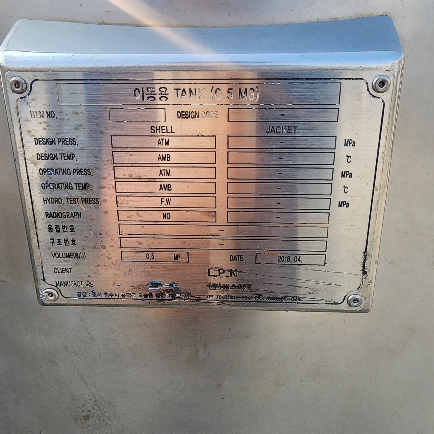 • 품명500L 이동식 저장탱크