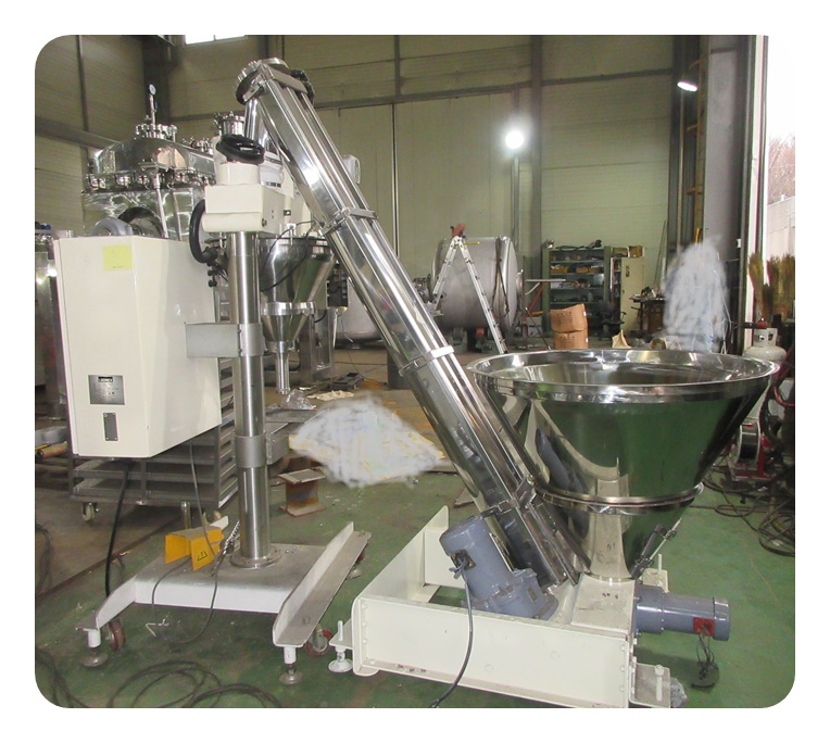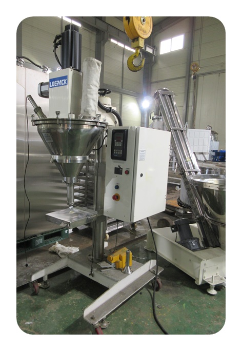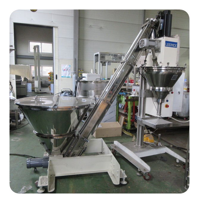 분말계량장치(오가포장기)와 스쿠류콘베아