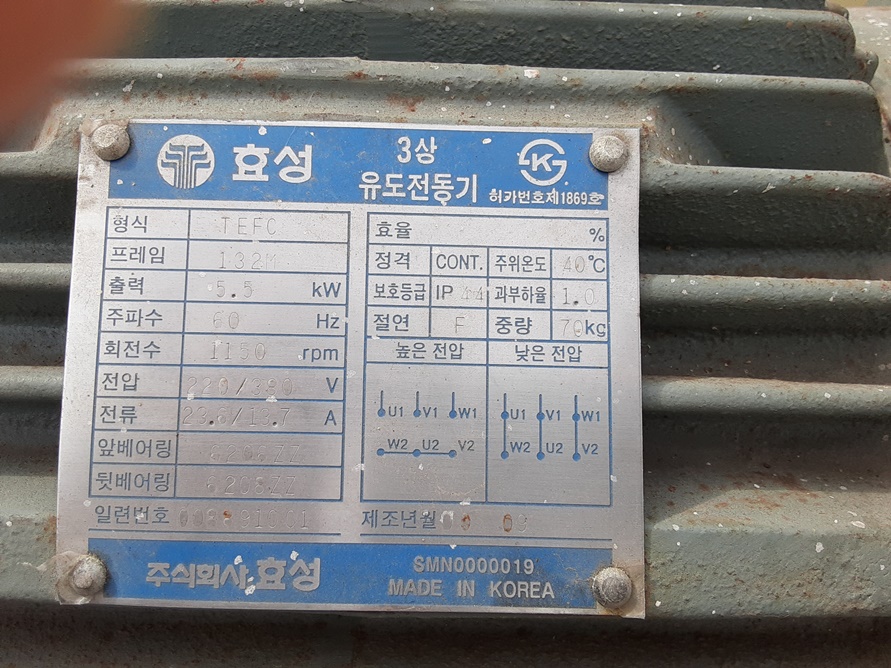 • 규격5.5kW(7.5HP), 2500L * 1350W * 1900H