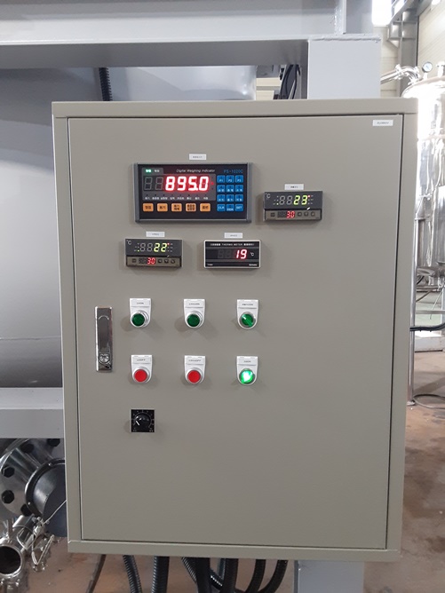 • 사양탱크: 2000L, 히터: 20kW * 2, 교반기: 15HP, 20:1, 로드셀