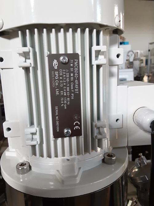• 사양탱크: 350(Φ) * 400(H), 외형: 700(L) * 500(W) * 1450(H), 모터: 0.4kW(½HP), 1730RPM