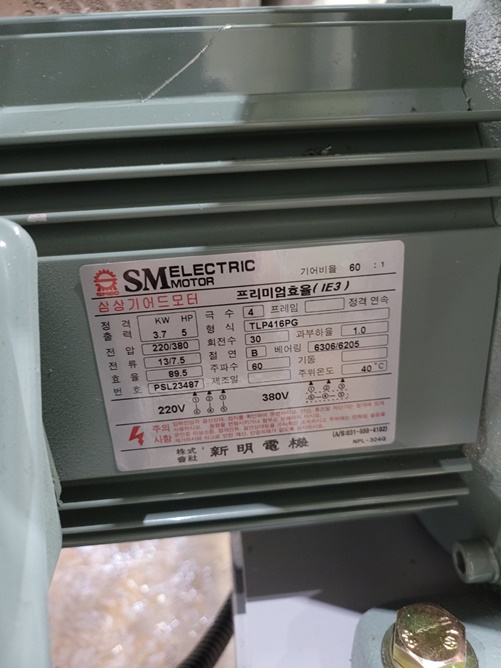 • 규격리본믹서: 500L, 모터: 3.75kW(5HP), 감속기: 60:1(30RPM)